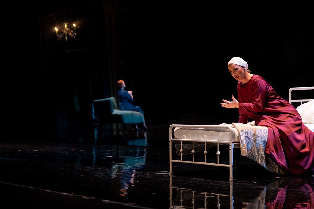 “One of my favorite parts about this production was the use of projection mapping and mirrors that gave the show layers of emotion and presence. Seeing O’Sullivan as Offred watch memories of her life leading up to the Gilead regime from behind a mirror felt like watching ghosts dance in the shadows of her mind. ”